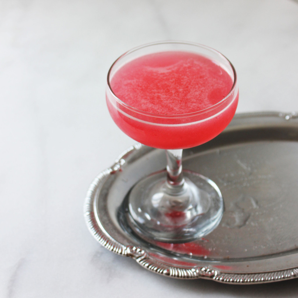 - Strain through a fine mesh sieve into a coupe glass and serve immediately.