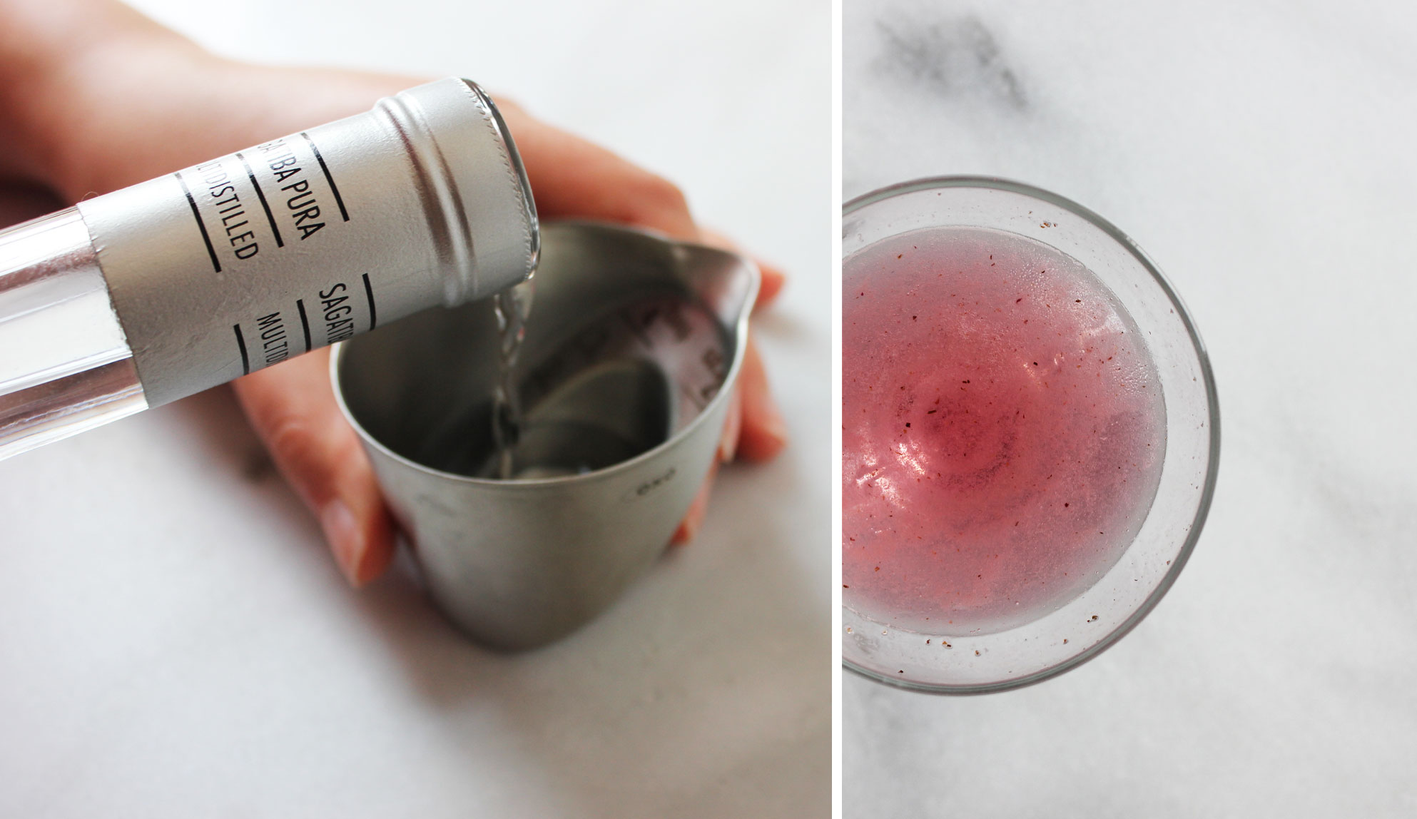 My wheels got turning again about DIY grenadine and grenadine variations after seeing an instagram from my friend Justin of a cocktail made with rosehip grenadine (!). Red currants—my favorite puckery, rosy summer fruits came to mind—and here I am with a local, homemade grenadine that I’m pretty into. It certainly isn’t an exact match of the store-bought stuff, but it does have a similar sweet-tart quality and the same pretty jewel-toned hue. I’m putting it to work in a lovely little summer cocktail with the elderflower liqueur St. Germain and Cachaça, the Brazilian spirit made from sugarcane juice.